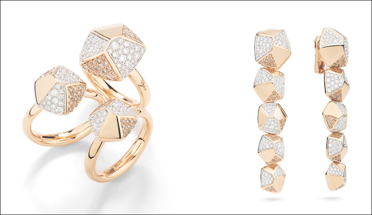 The collection's powerful aesthetic represents a masterfulfusion of Pomellato's signature boldness with sophisticated diamond setting techniques, elevating geometric forms into modern sculptural masterpieces.