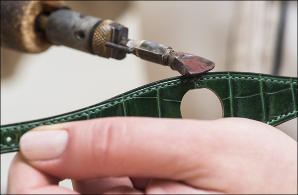 Working in the company ateliers, the cutting artisans carves out from a piece of leather the elements required to make a cuff strap.