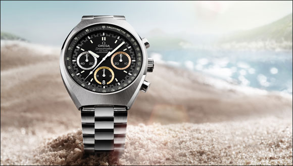 Inspired by the 1969 model of the original OMEGA Speedmaster Mark II, the polished and brushed stainless steel case is barrel-shaped and has a polished crown and pushers. Beneath a flat scratch-resistant sapphire crystal is a matt black dial featuring a 30-minute recorder at 3 o'clock, a 12-hour recorder at 6 o'clock and a small seconds sub-dial at 9 o'clock. The sub-dials are decorated with a bronze ring, 18K yellow gold ring and 925 silver ring respectively – a design that recalls the medals awarded to Olympic Games champions.
