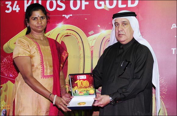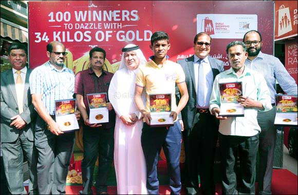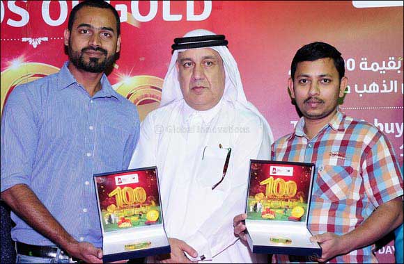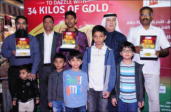 Mr. VISWANATHAN .K, Mr.JOBSON DAVID and Mr. M. D. HAROON have won 1/2 kg, 1/4 kg and 1/4 kg of gold respectively in DGJG Raffle Draw held on 26th January 2017. Ms. Amritha Venkatesh (1/4 kg winner of 31st December 2016) with Mr. Fatallah Abdulla Fatallah, Manager, Dubai Economic Departmen.