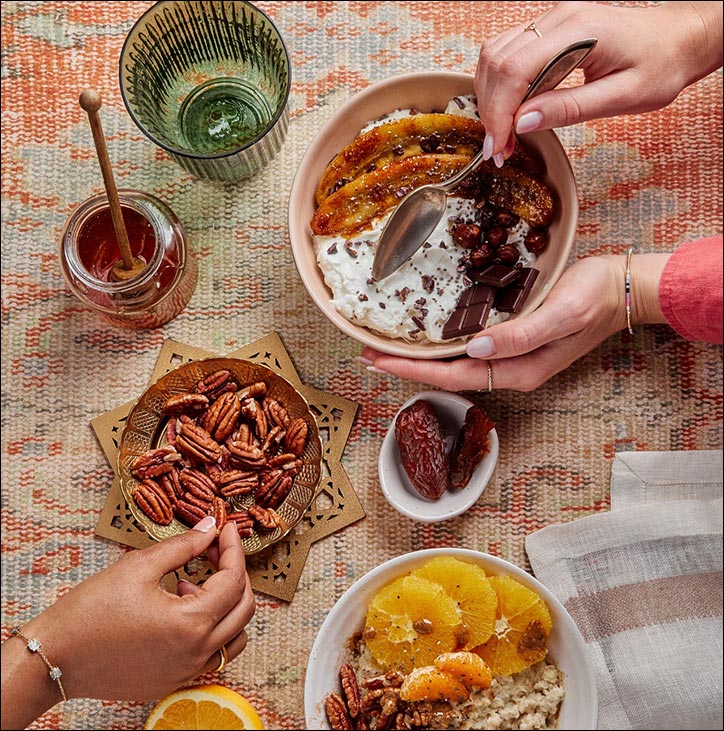 يجدر بنا التوقف قليلاً للتفكير في كيفية تأثير ما نأكله على حالتنا النفسية. فقد يؤثر انخفاض الطاقة، والتشوش الذهني (ضباب الدماغ)، والمشكلات الهضمية بشكل خفي على حياتنا اليومية، وخصوصاً خلال شهر رمضان. ولا يتعلق اختيار الأطعمة المغذية والعضوية والكاملة بالسعي نحو الكمال أو الضغط على النفس، بل بإعطاء جسمك ما يحتاجه ليشعر بالثبات والصفاء والدعم. وقد تساعدك الخيارات الصغيرة التي تتخذها الآن على دخول شهر رمضان وأنت تشعر بخفة أكبر وتوازن أكبر وقدرة أكبر على التركيز بالأمور الأكثر أهمية. وعندما يشعر جسمك بأنك تعتني به، يصبح الحضور الذهني، والتأمل، والتواصل طوال شهر رمضان أسهل وأكثر طبيعية.