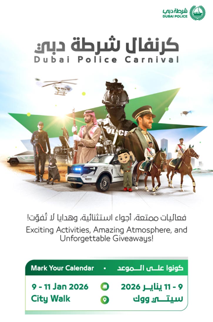 The Dubai Police Carnival offers a perfect opportunity to spend quality time with family, enjoy unique experiences, and get to know police services in a relaxed and engaging atmosphere at City Walk.