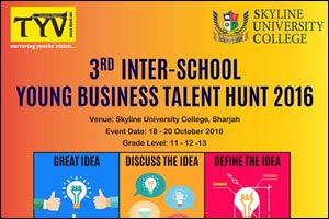 Sharjah, UAE, October 13, 2016: From the success of last year’s competition, Skyline University College (SUC) and The Young Vision Magazine (TYV) are back to set the stage for the third edition of the most anticipated Inter-School Young Business Talent Hunt on October 18-20, 2016.